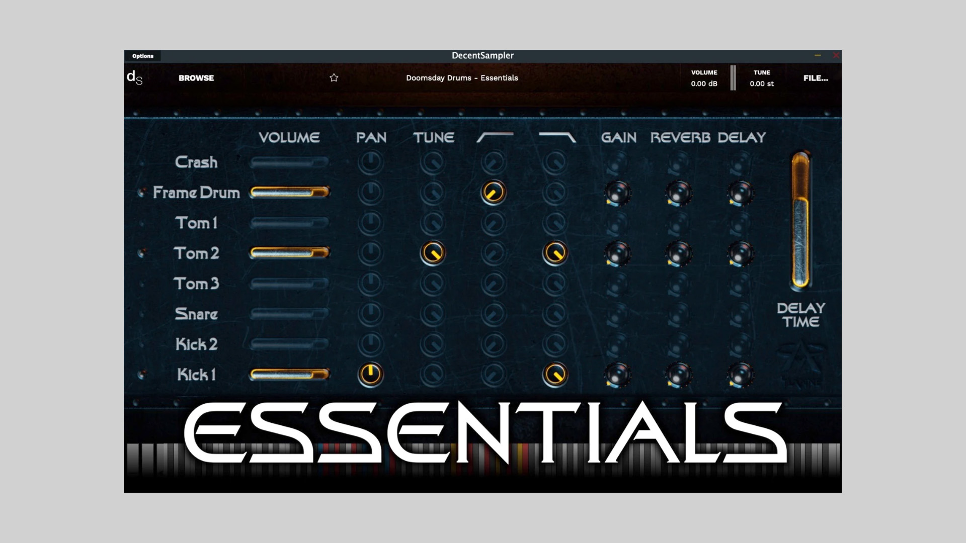 - Core controls: volume, pan, tune, high‑pass, low‑pass, gain, reverb, delay