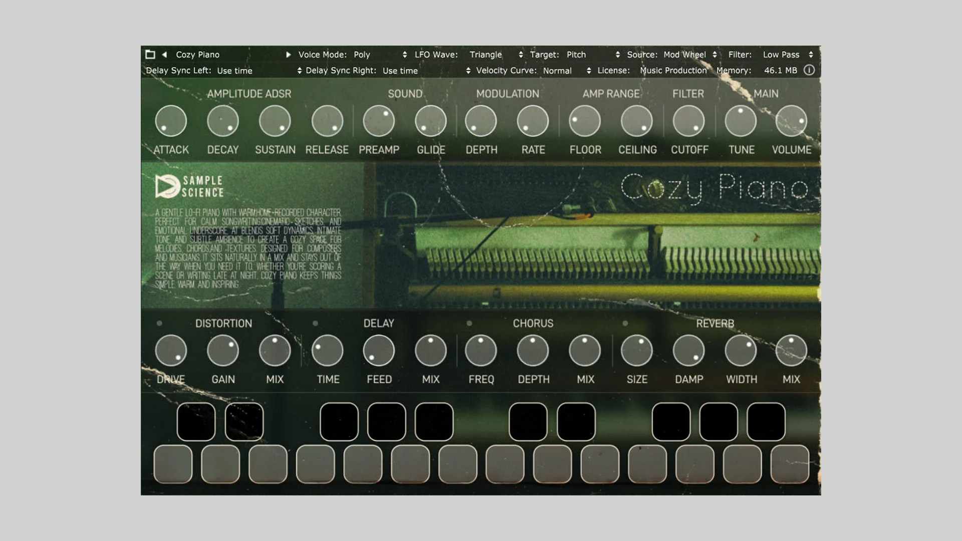 Cozy Piano lofi upright piano plugin is available as a free download from SampleScience Gumroad in all formats listed above. The Kontakt version requires the full version of Kontakt 5 or later.